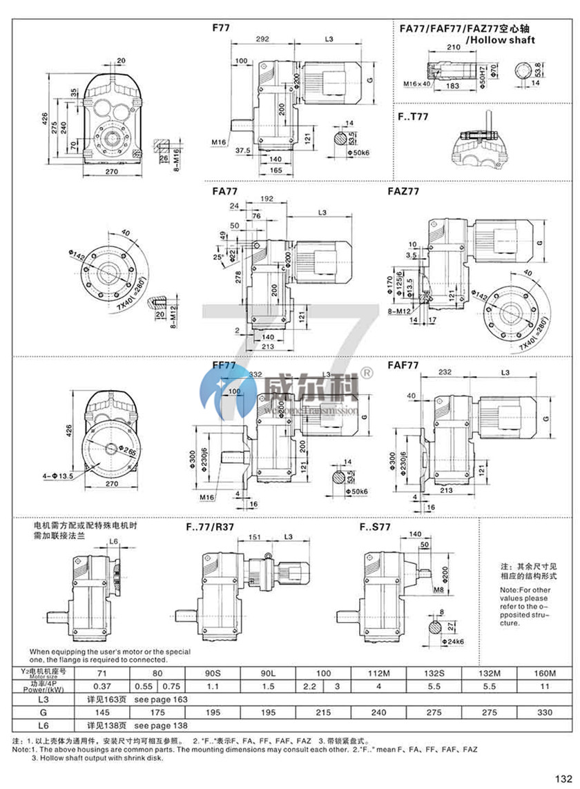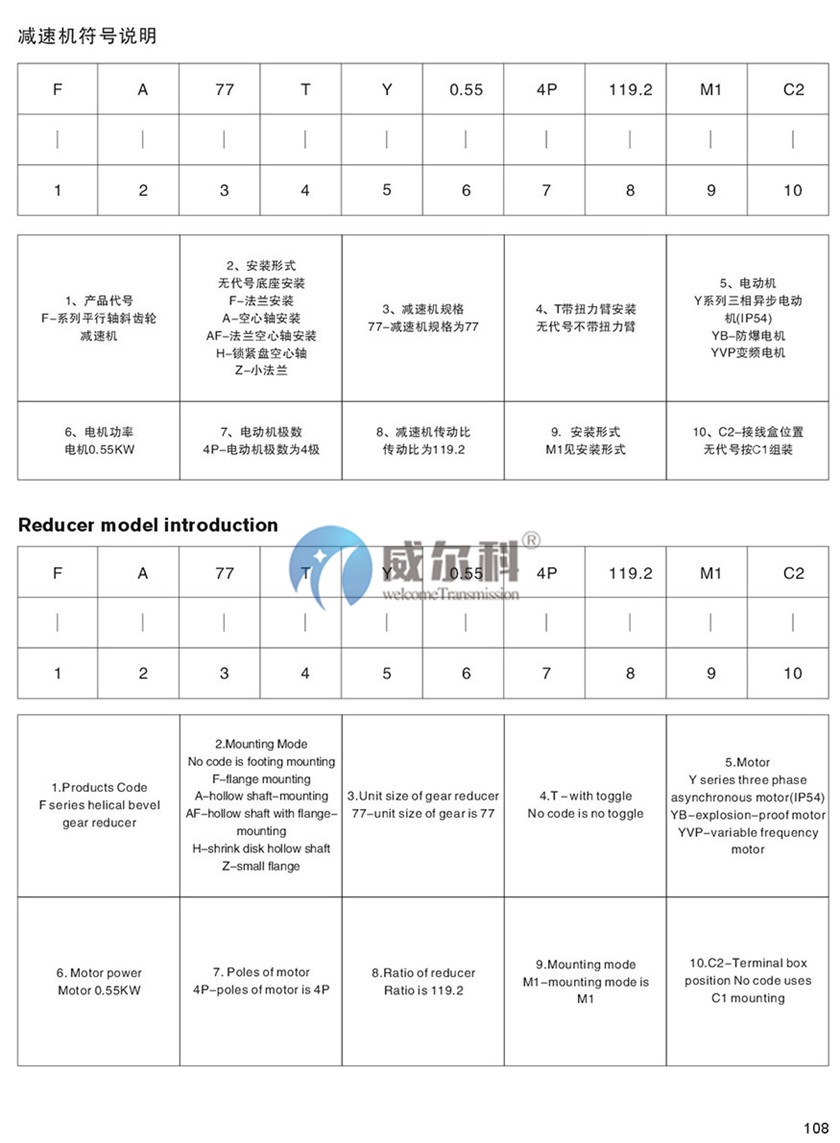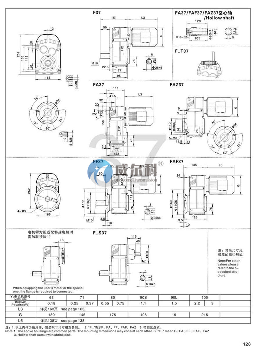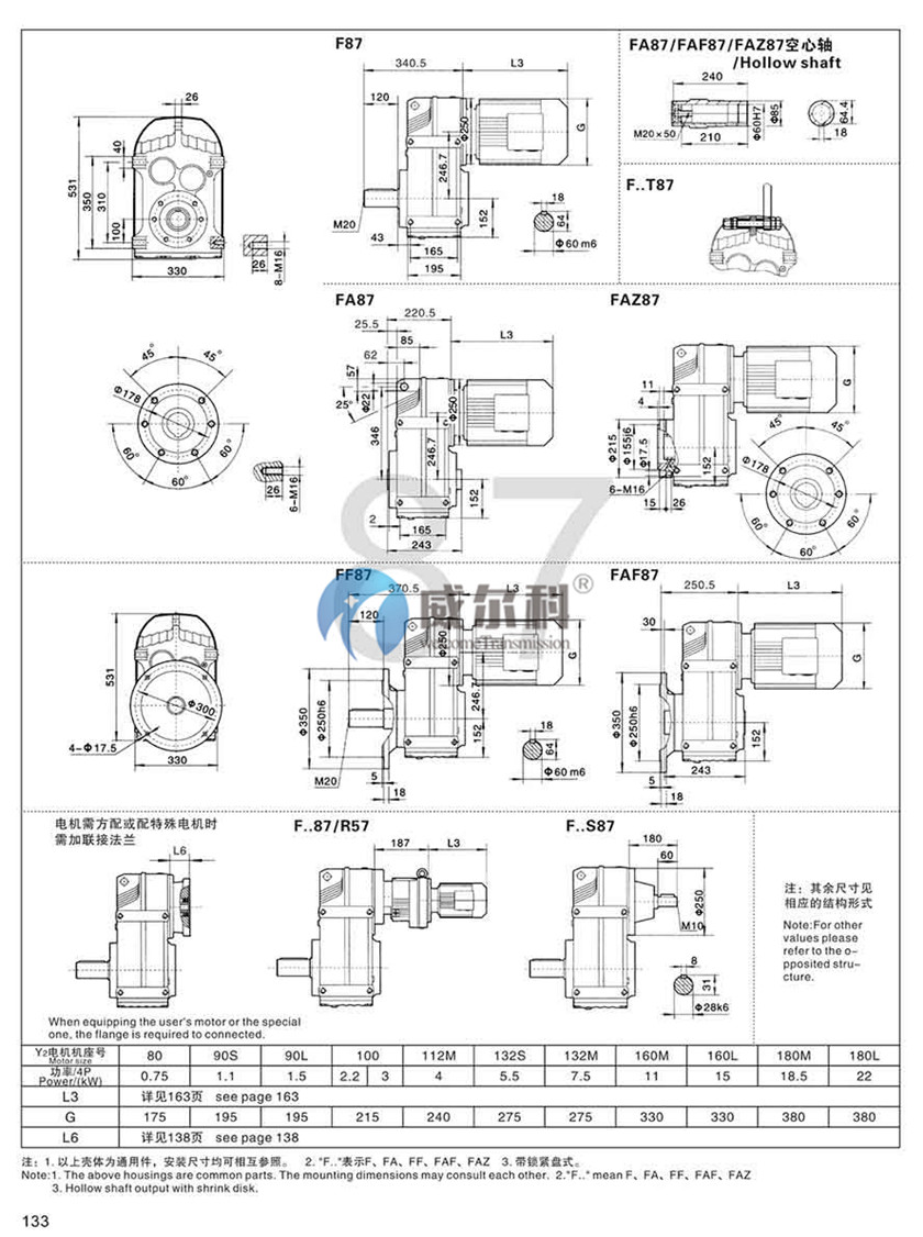 F-軸伸式、底腳安裝FA-軸裝式聯(lián)接