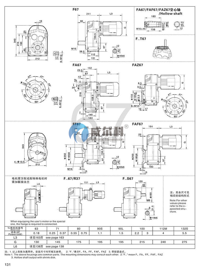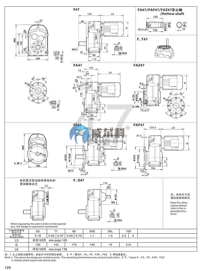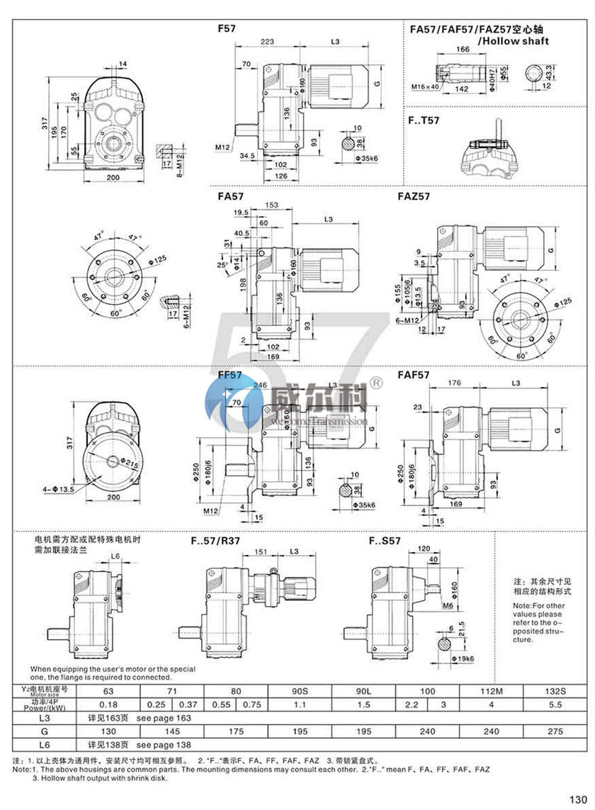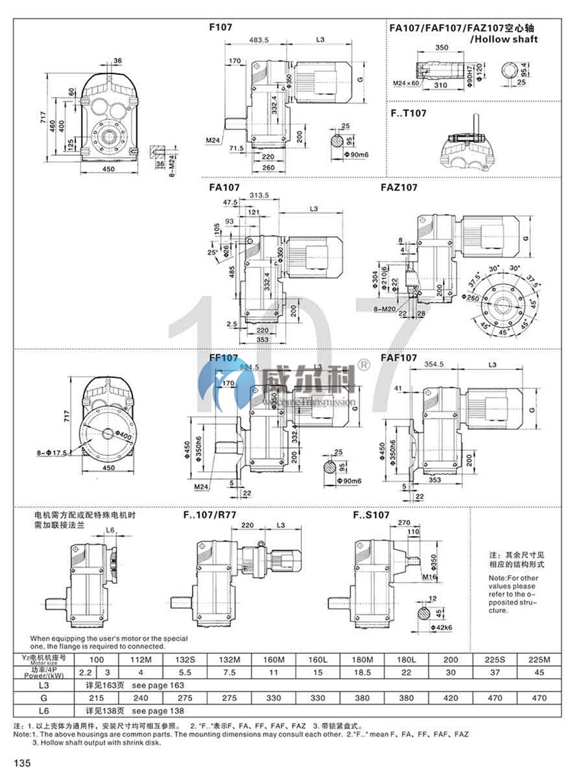 F-軸伸式、底腳安裝FA-軸裝式聯(lián)接
